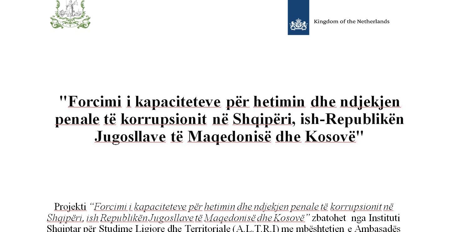 ALTRI Center with the support of the Embassy of the Kingdom of the Netherlands is implementing the initiative “Strengthening the capacity for Investigation and Prosecution of Corruption in Albania, former Yugoslav Republic of Macedonia and Kosovo”.