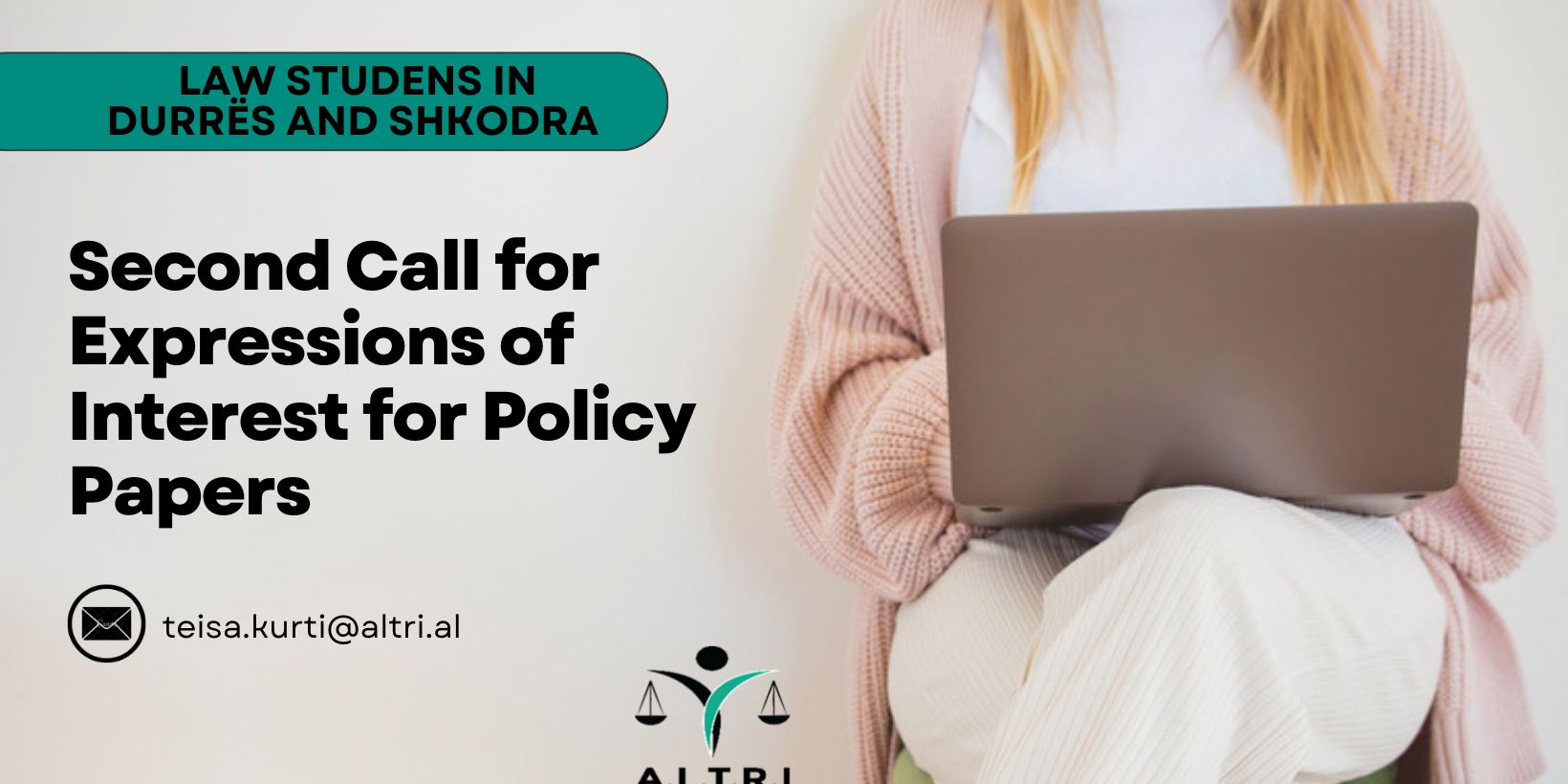Qendra A.L.T.R.I, fton të gjithë studentët e interesuar në Fakultete e Drejtësisë në Durrës dhe Shkodër të shprehin interesin e tyre për shkrimin e 2 artikujve (Policy Paper) lidhur me perceptimin e tyre mbi korrupsionin në arsimin e lartë. Studentët e përzgjedhur do të shpërblehen edhe me një çmim simbolik.