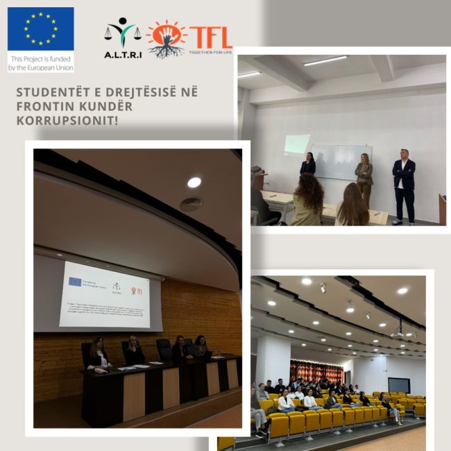 “Lufta kundër korrupsionit fillon nga studentët e drejtësisë që zgjedhin integritetin!” “Lufta kundër korrupsionit fillon nga studentët e drejtësisë që zgjedhin integritetin”, zbatohet nga Qendra ALTRI me mbështetjen financiare të Agjencisë për Mbështetjen e Shoqërisë Civile. Ky projekt ka si synim kryesor rritjen e ndërgjegjësimit të studentëve të drejtësisë në lidhje me fenomenin e korrupsionit…